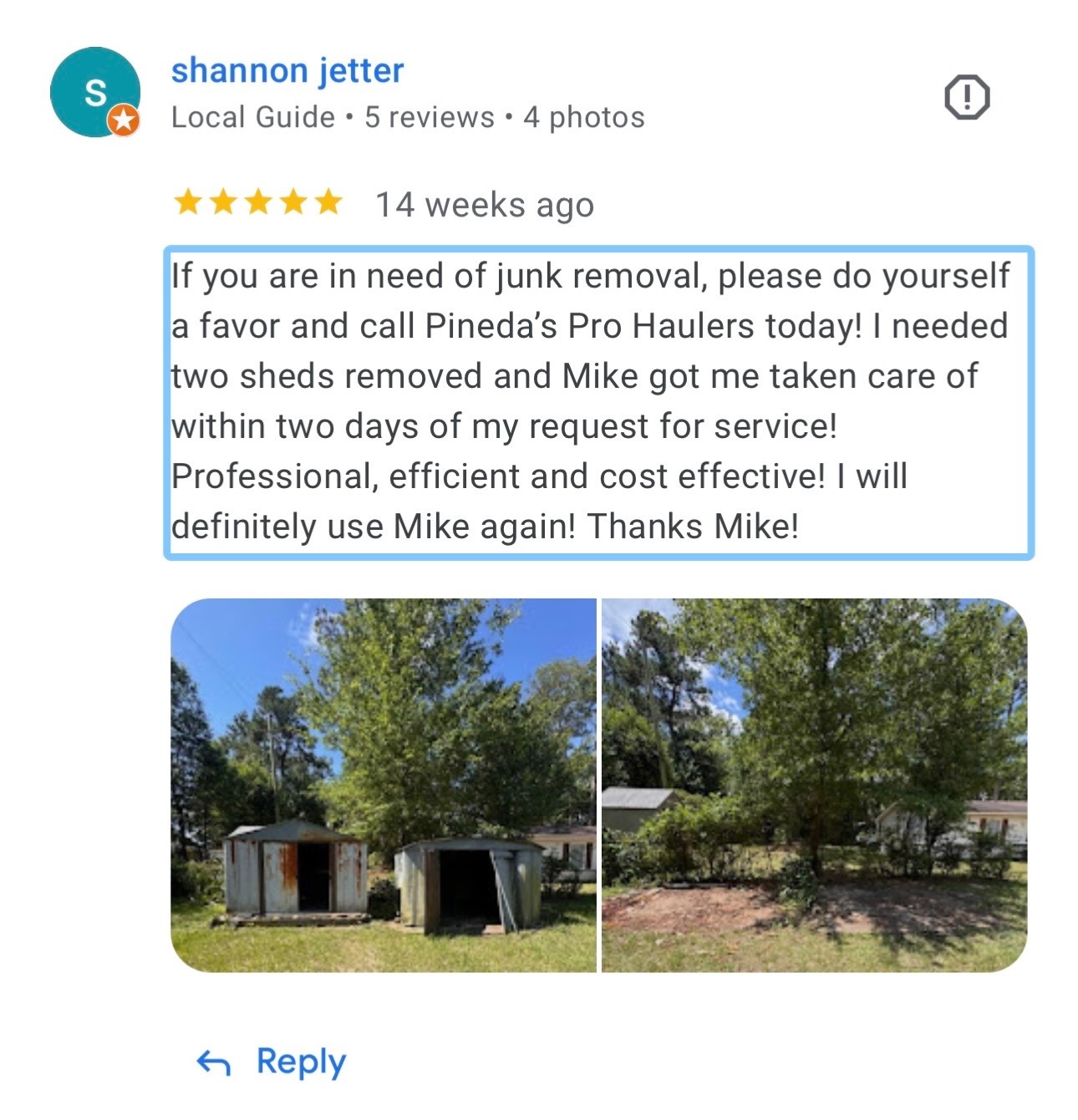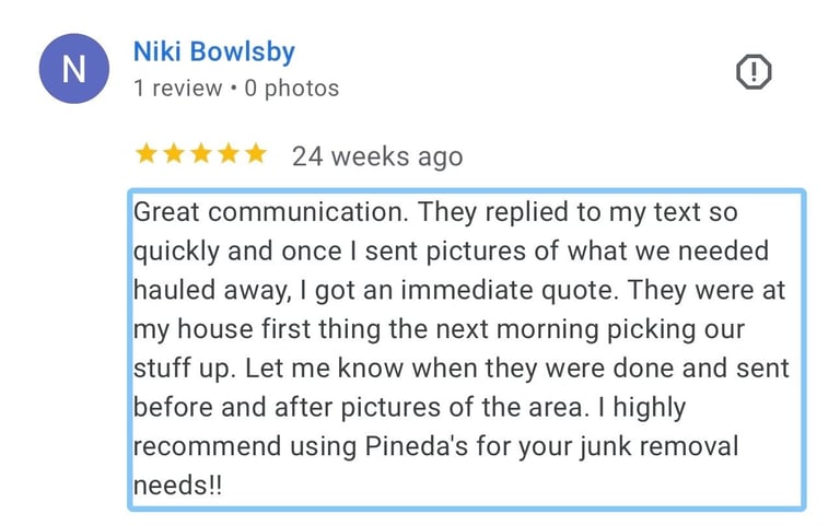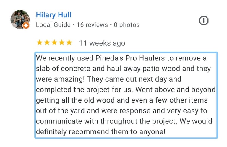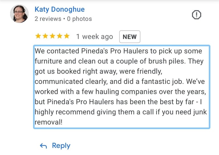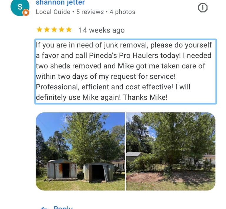 If you are in need of Junk, please do yourself a favor and call Pineda's Pro Haulers today! I needed two sheds removed and Mike got me taken care of within two days of my request for service! Professional, efficient and cost effective! I will definitely use Mike again! Thanks Mike